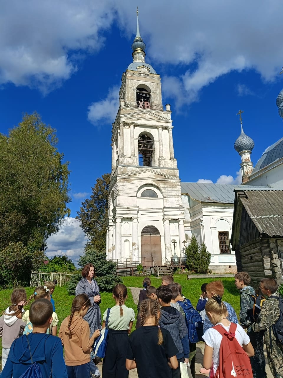 12 сентября ребята 2 и 3 классов завершили учебную неделю поездкой в село Давыдово. Нас встретила Бурбаева Людмила Владимировна.Она провела экскурсию по храму в честь иконы Божией Матери "Владимирская". Рассказала об истории его становления. На фотографиях мы увидели, каким он был много лет назад, и полюбовались нынешним видом храма.