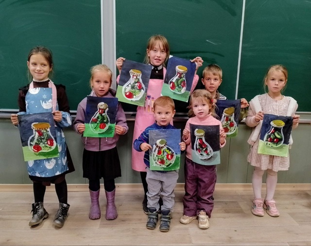 С младшими ребятами продолжили собирать урожай, но уже помогая мамам с заготовками: консервировали огурцы и помидоры🫑